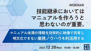 15:05~15:45 技能継承においては、マニュアルを作ろうと思わないのが重要。 ~マニュアル未満の情報を効率的に映像で共有し、明文化できない業務ノウハウを利活用する~