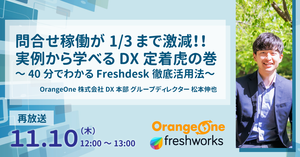 オレンジワンは、コロナ以後の2年間で実に800社を超える新たな企業様のDX化を支援いたしました。 その多数の現場支援のノウハウから、DX推進に不可欠となる問い合わせ業務の効率化には、①正しいステップで実施し、②ステップごとに運用を意識し、③単にシステム導入を行うのでなく業務を改善することで、④現場の巻き込みと協力を引き出し、⑤最終的に問い合わせの対応工数を3分の1まで削減できるツール=フレッシュデスクとその導入の方法論を、40分にぎゅっと凝縮してお伝えします!!