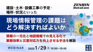 10:05~10:30 建設・土木・設備工事の予定・場所・状況といった現場情報管理の課題はどう解決すればよいか ~情報の一元化と地図情報での見える化で、業務効率と災害対応力を向上させる手法を解説~