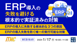 本ウェビナーでは、社内人材を短期間で養成できる「ERP管理者 養成講座」をご紹介します。 また、“ERP導入の失敗を避ける5つの条件” も説明しますので、ERPについて不安・不満・不信感をお持ちの方のガイドラインとして活用できます。 情報システム部門や経営管理部門の責任者の方、ERPへの高額な投資を回収できない懸念を抱いている経営者の方にお勧めの内容です。