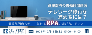 13:05~13:40 管理部門の労働時間削減、テレワーク移行を進めるには?〜管理部門自ら使いこなせるRPAの選び方、使い方〜