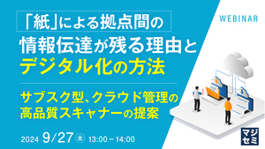 そこで本セミナーは、サブスク型、クラウド管理の高品質スキャナーを活用して、担当者スキルに依存しない企業の拠点間の情報伝達のデジタル化を実現する方法について解説します。