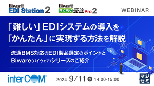 本セミナーでは、EDIツールがどのように自社のニーズにフィットするか、選定プロセスをスムーズに進めるための具体的運用例や、EDI運用におけるよく課題になるポイントの解決策から、自社に最適なEDI製品の選定をサポートします。 また、具体的な製品として「Biware らくらく受注 Pro 2」と「Biware EDI Station 2」についても紹介します。