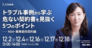 13:00~14:00 トラブル事例から学ぶ危ない契約書を見抜く5つのポイント(NDA・業務委託契約編)