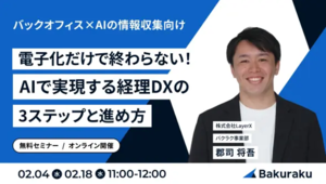 約10年間にわたり、ITプラットフォーム企業で累計600社以上のシステム導入支援や経営課題解決に従事。2025年よりLayerXに参画。現在はバックオフィスの方へ経理業務のDX化・効率化に向けた提案活動を推進。バクラクシリーズを通じ、お客様の本質的な課題解決に伴走している。