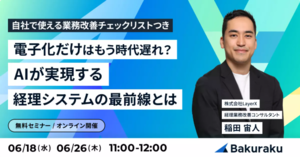 企業の成長に伴い、バックオフィスの最適化は経営課題としてますます重要視されています。本セミナーでは、経理領域におけるAI活用の実例と、AIと人材活用による業務効率化という2つの視点から、経理部門の生産性を劇的に向上させるためのヒントをお届けします。