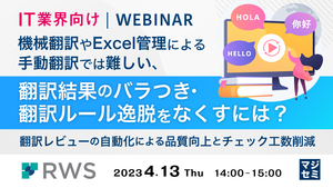 14:05~14:45 【IT業界向け】機械翻訳やExcel管理による手動翻訳では難しい、翻訳結果のバラつき・翻訳ルール逸脱をなくすには?〜翻訳レビューの自動化による品質向上とチェック工数削減〜
