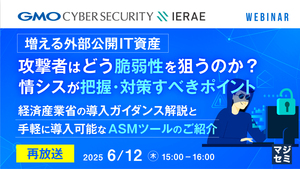 15:05~15:45 増える外部公開IT資産、攻撃者はどう脆弱性を狙うのか? 情シスが把握・対策すべきポイント~経済産業省の導入ガイダンス解説と、手軽に導入可能なASMツールのご紹介~