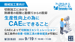 10:05~10:45 【機械加工業向け】切削加工における熟練者の経験と勘頼りからの脱却 生産性向上の為にCAEにできること ~CAEによって切削加工をシミュレーション 加工条件の改善・切削工具の寿命延長が可能に~