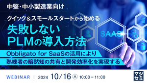 本セミナーでは、すぐに、安価に、手軽に、利用できるクラウド型PLMサービスである「Obbligato for SaaS」に焦点を当て、中堅・中小製造業のPLM導入の課題を解決するための勘所を具体的な事例を交えて詳しく解説します。