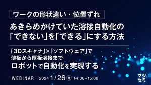14:05~14:45 (ワークの形状違い・位置ずれ)あきらめかけていた溶接自動化の「できない」を「できる」にする方法 ~「3Dスキャナ」×「ソフトウェア」で薄板から厚板溶接までロボットで自動化を実現する~
