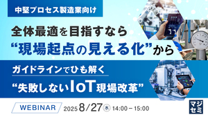 本セミナーでは、プロセス製造業における全体最適の実現を見据え、IoTの導入・活用を現場改善につなげる具体的な進め方について、実際の成功事例を交えながら詳しく解説します。
