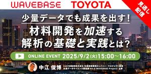 本ウェビナーでは、MIの基礎と課題、MI推進のポイントである計測データの活用について解説した上で、弊社材料解析クラウドサービスWAVEBASEのご紹介をいたします。業界・部門を問わず、計測データをフルに活用し、開発効率化を進めたい製造業の方にお勧めのウェビナーです。