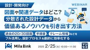 本セミナーでは、ミラリンクが提供する設計AIエージェント『タグっと』を活用し、過去の図面情報と関連資料を一元管理することで設計プロセスを劇的に効率化する方法を、具体的な活用例と共に詳しく解説します。