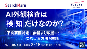 本セミナーでは、FutureArtisanが 提供するAI外観検査ソリューション「SearchMaru」を活用し、効果的なアプローチを実際の事例やデモを通してご紹介します。 製造工程データや測定データを統合し、高次元的な統計解析を行うことで、検知だけでなく不良要因の特定から歩留まり改善まで実現する方法を解説します。 さらに、要件定義からPoC(概念実証)、導入後の運用支援まで、FutureArtisanならではのトータルサポートについても詳しくお伝えします。