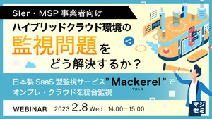 本セミナーでは、ハイブリッドクラウド環境においてSIerやMSP事業者がどのように監視環境を実現するべきか解説いたします。また、その具体的な手段として日本製SaaS型監視サービス”Mackerel(マカレル)”についてご紹介すると共に、SIer・MSP事業者向けのパートナープログラムについてご紹介いたします。