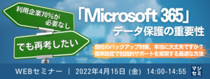 14:05~14:45 「利用企業70%が必要なし」でも再考したい「Microsoft 365」のデータ保護の重要性 ~自社のバックアップ対策、本当に大丈夫ですか? 簡単設定で包括的サポートを実現する最適な方法~