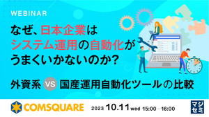 また、後半パートでは株式会社コムスクエアより、運用自動化ツールの選定ポイントについてお話しするとともに、運用自動化プラットフォーム「ロボシュタイン」についてデモンストレーションを交え、ご紹介いたします。
