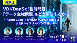 本セミナーでは、Microsoft Azureの国内限定リージョン「Azure Local」と、NVIDIA vGPUを組み合わせた最新VDI環境をご紹介します。Azure Localにより、データの物理配置を日本国内に限定でき、データ主権リスクを最小化。さらにvGPUにより、高負荷業務にも対応する高性能な仮想デスクトップを実現します。セキュリティ・法令遵守・パフォーマンスを同時に満たす次世代の選択肢として、具体的な活用事例や構成を交えて解説します。