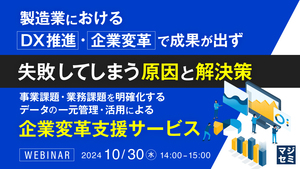 14:05~14:45 製造業におけるDX推進・企業変革で成果が出ず失敗してしまう原因と解決策 ~事業課題・業務課題を明確化するデータの一元管理・活用による企業変革支援サービス~