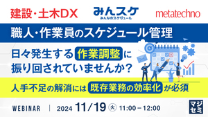 11:05~11:45 【建設・土木DX】職人・作業員のスケジュール管理 日々発生する作業調整に振り回されていませんか?~人手不足の解消には既存業務の効率化が必須~