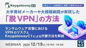 13:05~13:50 大手資材メーカーや大規模病院が実現した「脱VPN」の方法 ~ランサムウェア攻撃におけるVPNのリスクと、KeygatewayC1による代替方法を解説~