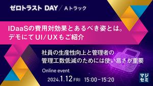 15:00~15:15 IDaaSの費用対効果とあるべき姿とは。デモにてUI/UXもご紹介~社員の生産性向上と管理者の管理工数低減のためには使い易さが重要~