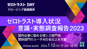 17:20~17:55 ゼロトラスト導入状況 意識・実態調査報告2023~国内企業に勤める情シス部門他、関係部門のユーザ400名以上を対象~