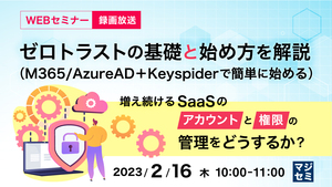 本セミナーでは、多くの企業が導入済みのM365/AzureAD(+Keyspider)を使って簡単にゼロトラストを始める方法について解説します。