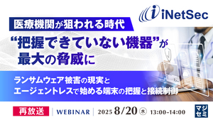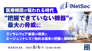 本セミナーでは、医療機関に求められるセキュリティ対策の中でも「端末・ネットワーク機器の把握と制御」に焦点を当て、厚労省チェックリスト対応に直結する実践的アプローチを、セキュリティ対策アプライアンス「iNetSec SF」を用いてご紹介します。 iNetSec SFは、エージェントレスで院内ネットワーク上の全端末を自動検出し、未許可端末や未承認機器(スイッチ、ルーター、プリンタ、医療機器、監視カメラなど)も可視化・遮断できます。資産台帳に載らないシャドーITや一時接続機器の検出が可能で、形骸化した管理から脱却し、現場主導で即時に実効性のある対策を開始できます。 さらに、ネットワークのふるまい検知機能により、ランサムウェア感染拡大の兆候を早期に発見し、自動で隔離することも可能です。セミナーでは、全国の病院での導入事例を交えながら、PC以外のネットワーク機器やIoT機器も含めた「院内ネットワーク丸ごと可視化・防御」の実践イメージをご紹介します。