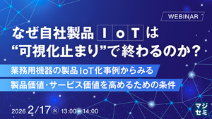 本セミナーでは、自社製品のIoT化を検討している、もしくは自社製品のIoT化はできているが何らかの課題を持たれいている方々に向けて、製品IoTを単なる可視化・監視の仕組みで終わらせず、サービスとして提供し、継続的な収益につなげていくための施策を、業務用機器のIoT化実践事例をもとに解説します。