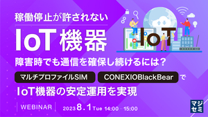 14:00~14:45 稼働停止が許されないIoT機器、障害時でも通信を確保し続けるには?〜「マルチプロファイルSIM」「CONEXIOBlackBear」でIoT機器の安定運⽤を実現〜