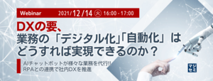 16:05~16:45 DXの要、業務の「デジタル化」「自動化」はどうすれば実現できるのか?~AIチャットボットが様々な業務を代行!! RPAとの連携で社内DXを推進~