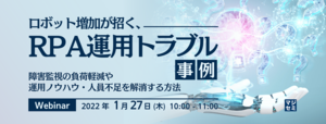 10:05~10:45 ロボット増加が招く、RPA運用トラブル事例~障害監視の負荷軽減や運用ノウハウ・人員不足を解消する方法~