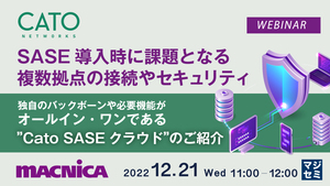 本セミナーでは、これからの時代に求められるネットワークセキュリティについて解説すると共に、グローバル拠点や店舗などの拠点数が多い企業がそれらをどのようにそれを実現すべきか解説致します。 また、具体的な手段として必要機能がオールイン・ワンである””Cato SASEクラウド”をご紹介致します。SASEをどのように実現したらよいか、拠点間接続はどうあるべきか等についてお悩みの方は是非本セミナーにご参加ください。
