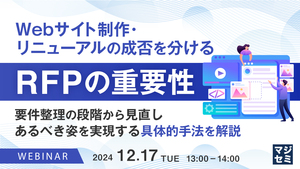 13:05~13:45 Webサイト制作・リニューアルの成否を分けるRFPの重要性 ~要件整理の段階から見直し、あるべき姿を実現する具体的手法を解説~
