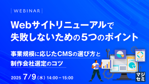 本セミナーでは、企業の事業規模や運用体制に応じたCMS選定の最適解を提示し、リニューアルの成果を確実に得るための判断基準を解説します。 「どのCMSが合っているのか」「何を社内で整理すべきか」「どのようなパートナーを選ぶべきか」といった現場の悩みに対し、5つのポイントから、実践的なアプローチを紹介します。 特に、目的の曖昧さや不明確な選定基準・セキュリティ要件の抜け漏れなど、よくある失敗を未然に防ぐための正しい選び方をわかりやすく体系化しています。 初めて担当する方はもちろん、これまでリニューアルを経験された方にも、おすすめの内容です。