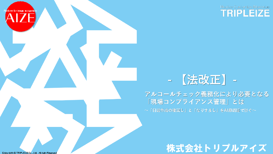 14:05~14:45 アルコールチェック義務化により必要となる現場コンプライアンス管理とは ~「日誌作成の後回し」と「なりすまし」をAI顔認証で防ぐ~