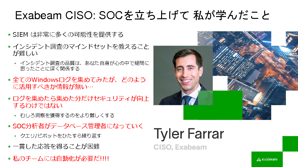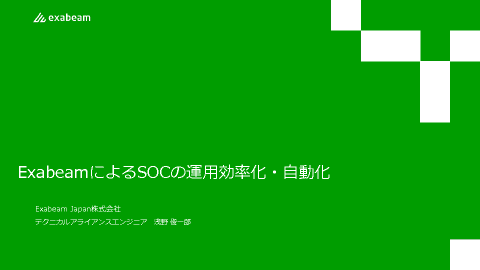 14:30~14:55 SOCの運用の効率化、自動化などについて、次世代製品のご紹介(Exabeam Japan株式会社)