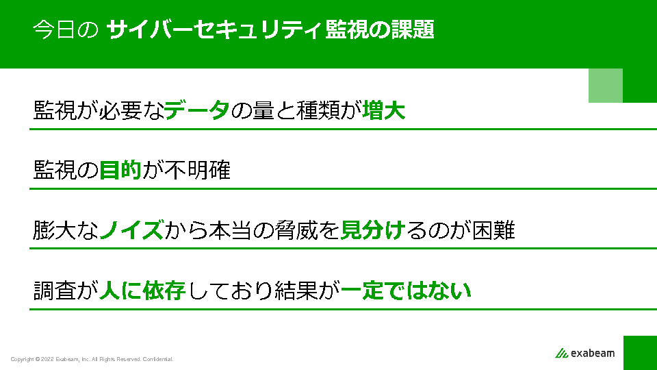 セキュリティ運用の負荷やコストが増大する中、事業継続にも影響を与える危険な脅威が膨大なノイズの中に埋もれてしまう状況をどう解決していけばよいのでしょうか。