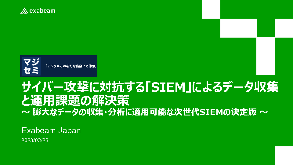 10:05~10:45 サイバー攻撃に対抗する「SIEM」によるデータ収集と運用課題の解決策 ~ 膨大なデータの収集・分析に適用可能な次世代SIEMの決定版 ~