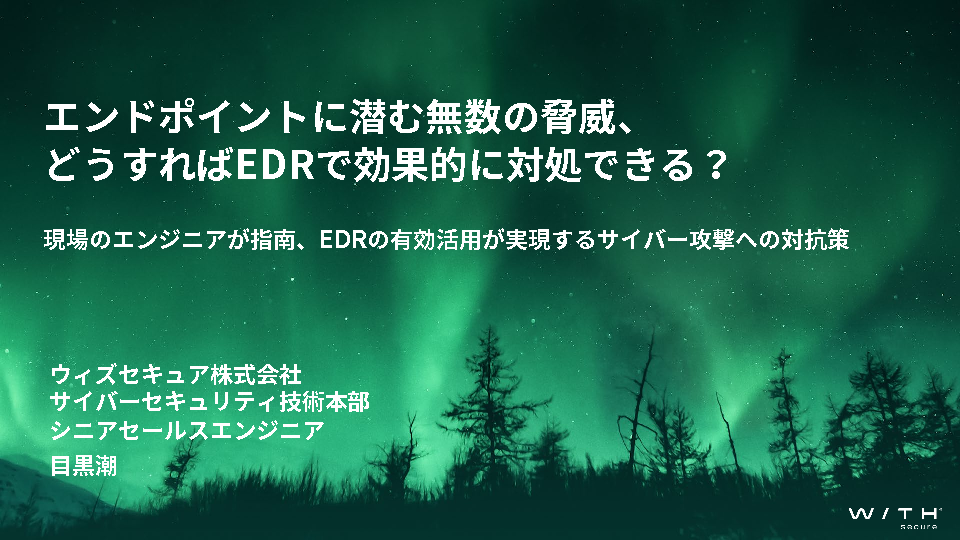 エンドポイントにおけるセキュリティ脅威の現状を踏まえ、EDRの重要性をあらためて解説。具体的な解決策として、現場で活躍するエンジニアがEDRの有効活用方法などを紹介します。