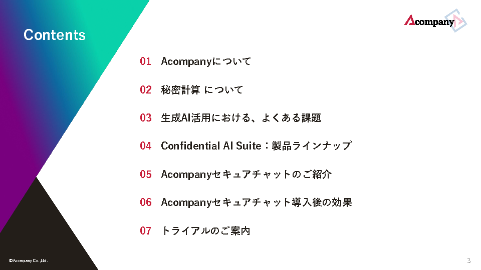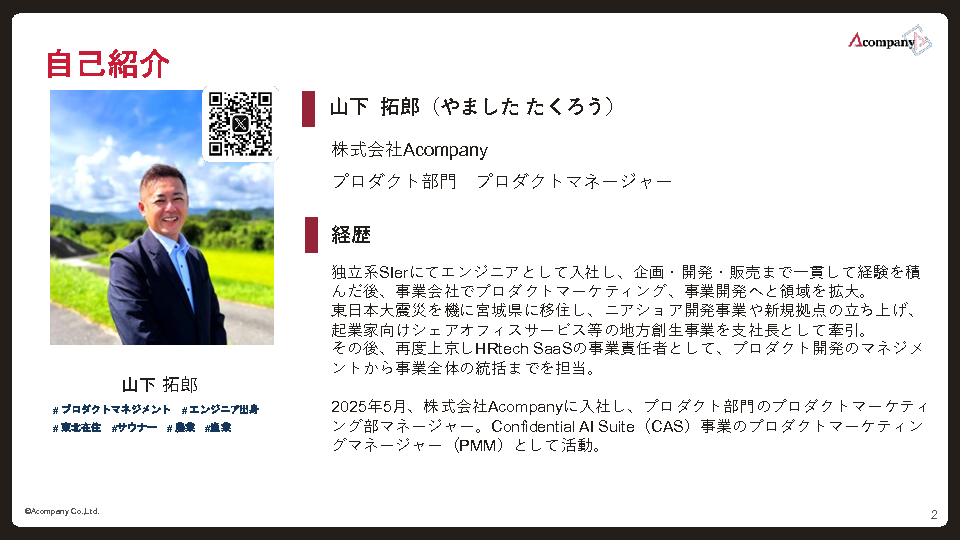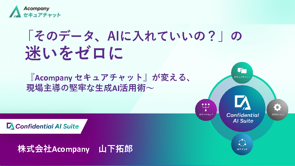 13:05~13:45 【大企業向け】「そのデータ、AIに入れていいの?」の迷いをゼロに~『Acompany セキュアチャット』が変える、現場主導の堅牢な生成AI活用術~