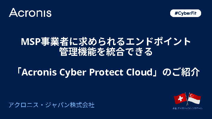 13:05~13:35 MSP事業者に求められるエンドポイント管理機能を統合できる「Acronis Cyber Protect Cloud」のご紹介(アクロニス・ジャパン株式会社)
