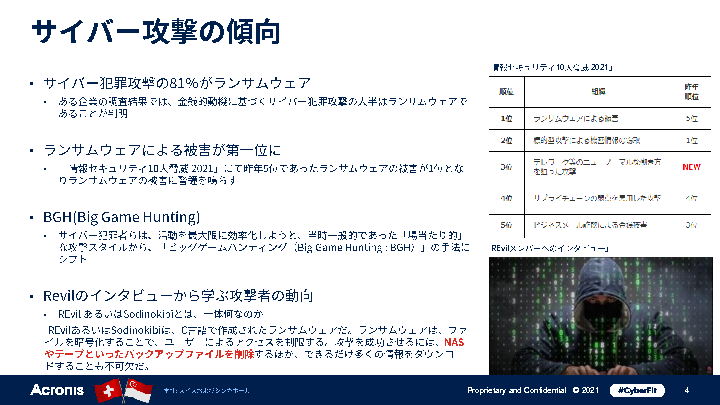 高度化するサイバー攻撃の被害が後を絶ちません。2021年7月、国際的な犯罪グループ「REvil」がIT管理ソフトウェアの脆弱性を突いたサプライチェーン攻撃を仕掛け、多くの企業・組織が影響を受けました。