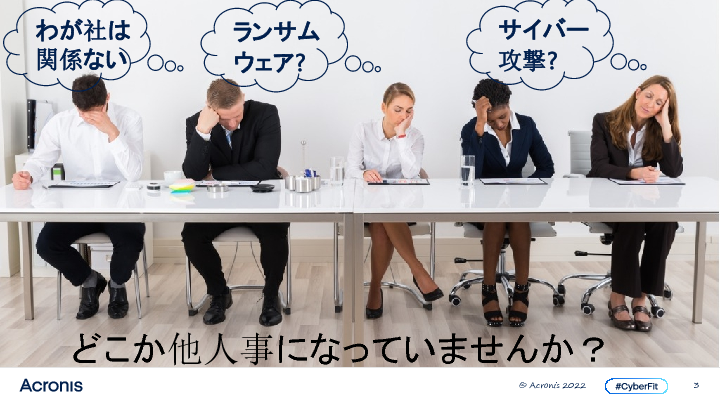 サイバー攻撃は巧妙化し、サイバー攻撃者は休むことなく我々に攻撃を仕掛けてきます。従来のセキュリティ対策では進化し続けるサイバー攻撃に対抗すること困難となりました。高度な脅威、未知の脅威に対抗するアクロニスの製品・最新テクノロジーをご紹介します。