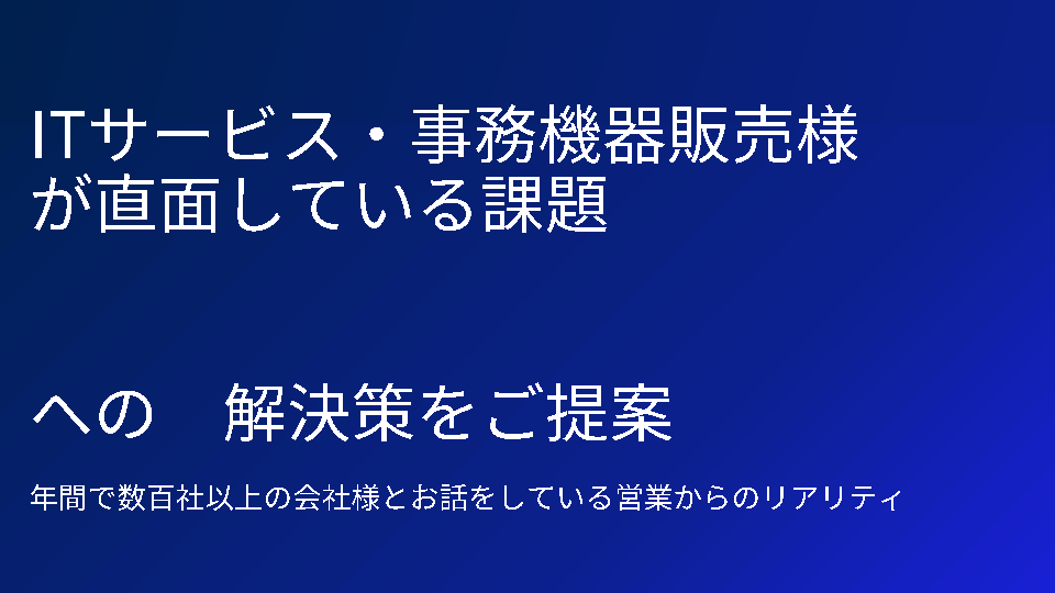 本セミナーは、SIer、IT機器/PC販売/リース事業者でITサポートビジネスを業務されている、またはこれから検討される企業の方が対象です。エンドユーザー企業の方は、お申込みをお断りする場合がございます。あらかじめご了承ください。