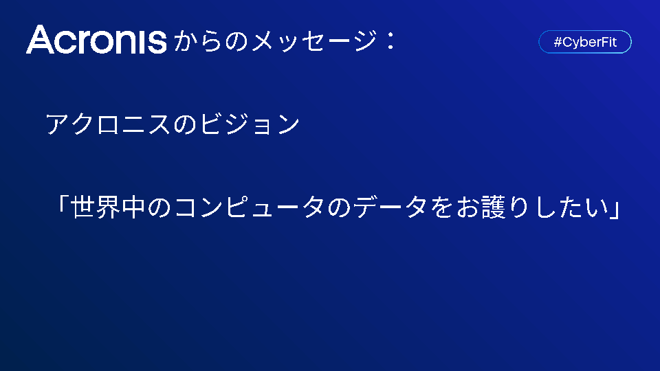 企業ITのリスクは、機器の故障、操作ミス、災害によるデータ喪失からランサムウェアをはじめとする巧妙なサイバー攻撃まで多様化しています。従来のバックアップやセキュリティソリューションの導入だけでは、企業の情報資産の保護と事業継続は困難になりつつあります。アクロニスの「バックアップ」、「セキュリティ」、「管理」を統合したAcronis Cyber Protect Cloudで実現する「サイバープロテクション」を紹介いたします。