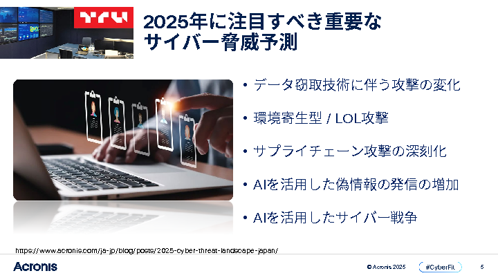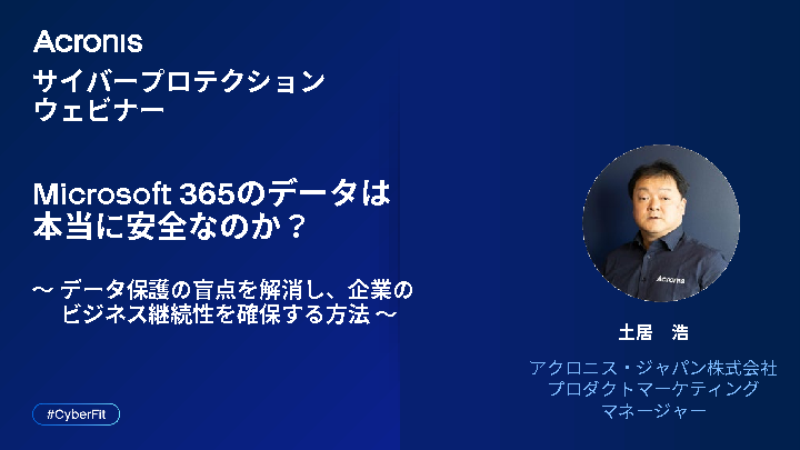 サイバー攻撃の複雑化に対抗するには、セキュリティとバックアップの統合が不可欠です。本セミナーでは、Acronis Cyber Protectを導入した成功事例をもとに、Microsoft 365環境におけるデータ保護の盲点を解消し、企業のビジネス継続性を確保する方法を解説します。さらに、万が一のデータ喪失や攻撃に対して、迅速かつ効果的に復旧できる方法と、データの安全性を保つための最適なアプローチを紹介します。