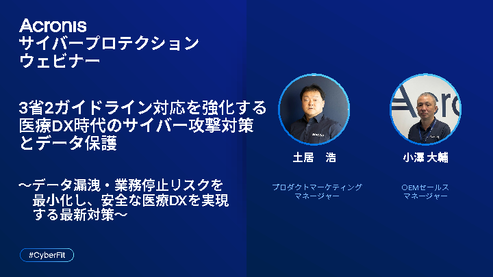 14:25~14:55 医療機関の機密情報をランサムウェアから守るために~バックアップとセキュリティを包括したサイバープロテクションで安心・安全の医療DXを構築(デモあり)
